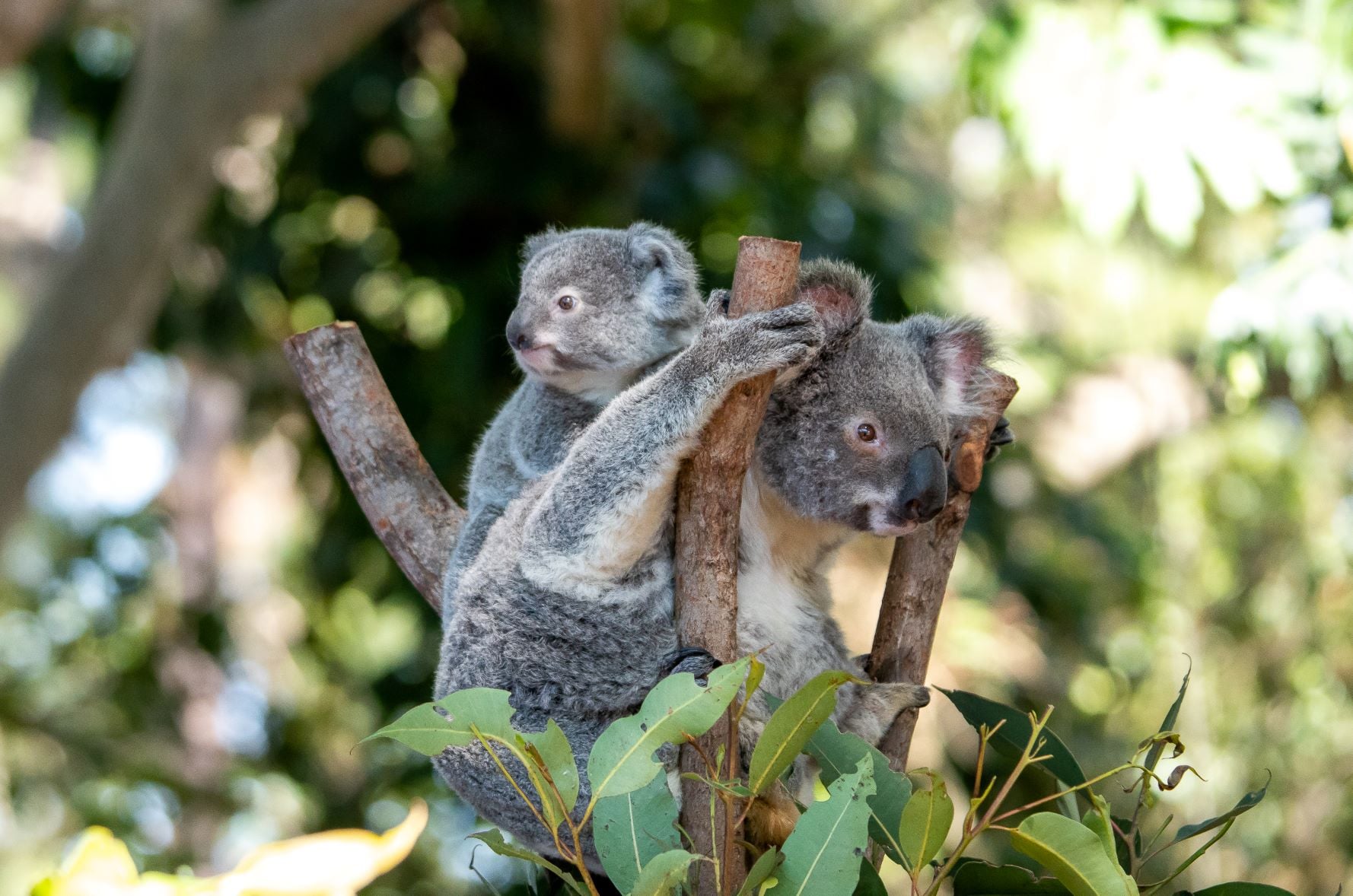 With their fluffy ears and gentle gaze, koalas are instant heart-catchers. Tucked high among the gum trees, they enjoy their days munching on eucalyptus leaves and snoozing in the sunshine.