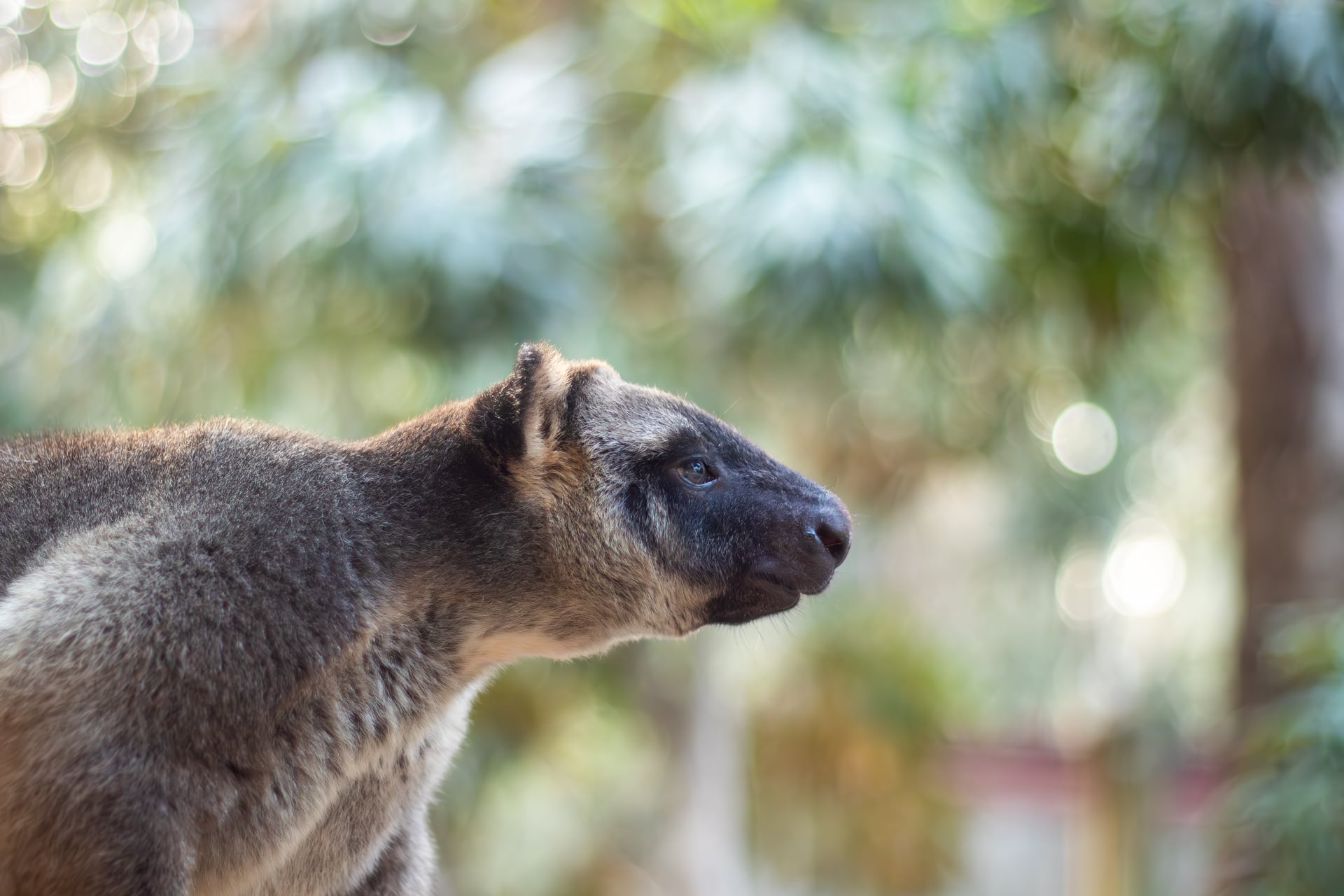 Lumholtz's tree kangaroos spend their entire lives high in the rainforest canopy, making them skilled climbers and jumpers. The smallest of all tree kangaroo species, they weigh just 5–8 kg and are found only in the rainforests of Northern Queensland. As foliavores, they mainly snack on leaves and plant matter.